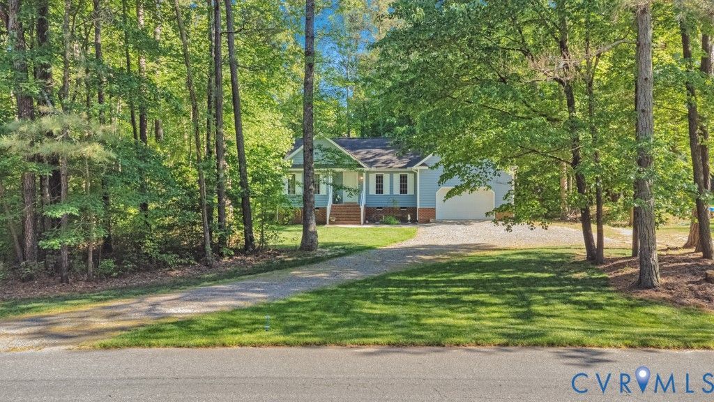 Beautifully maintained ranch offering 3 bedrooms and 2 full baths with a desirable split bedroom floor plan. This open concept home features a spacious living area with cathedral ceilings and a cozy gas fireplace, creating a bright and inviting space for everyday living. The kitchen flows seamlessly into the main living area, perfect for entertaining. Enjoy peace of mind with a new heat pump installed in 2024. Situated on a private 0.72 acre lot, the property boasts a park-like setting with lush green grass, a rear fence, and a rear deck ideal for relaxing or hosting. Additional highlights include a 2-car garage and front load washer and dryer that convey. Conveniently located with easy access to I-295, I-64, and Route 60, offering a quick commute to Richmond and Williamsburg. Schedule your private showing today.